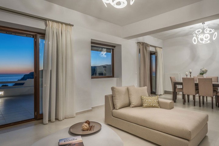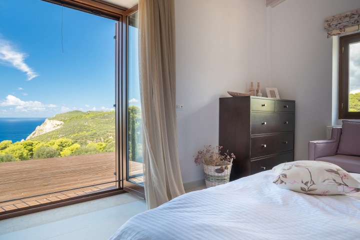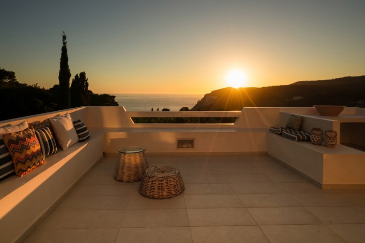 From the first floor, the bedrooms enjoy a view to the west coasts of the island and the small balcony is ideal for sitting and admiring the most beautiful sunset vistas, with the fragrance of pine trees wafting through the air.